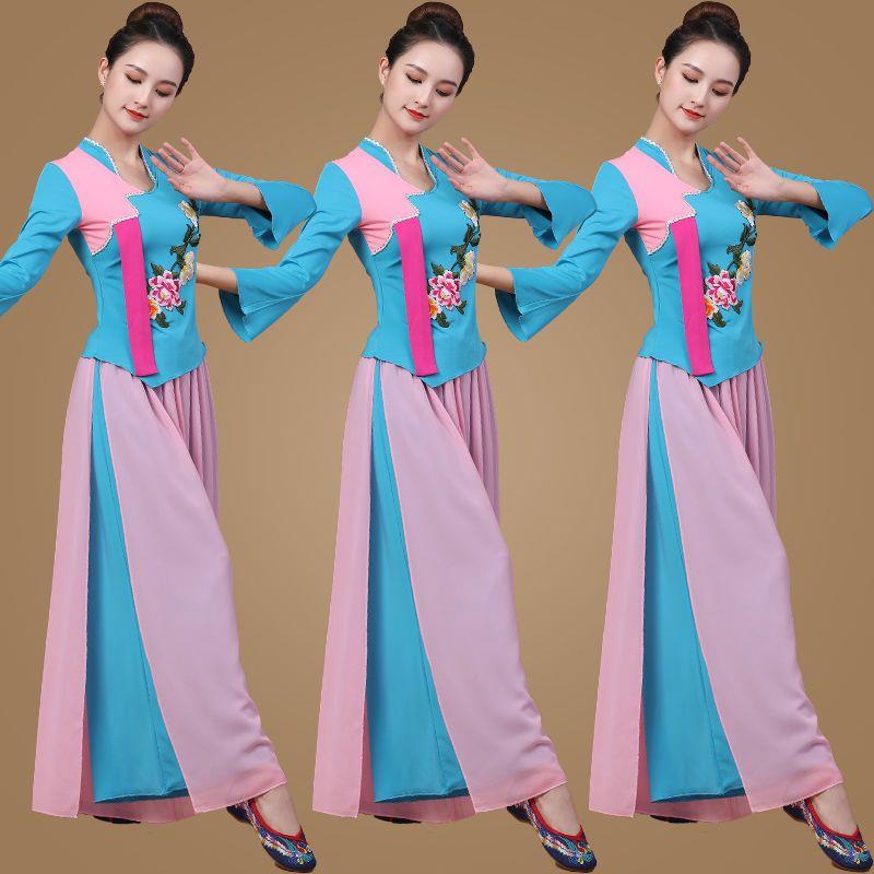 春夏广场舞服装新款套装古典雪纺秧歌舞扇子舞表演演出舞蹈服装女