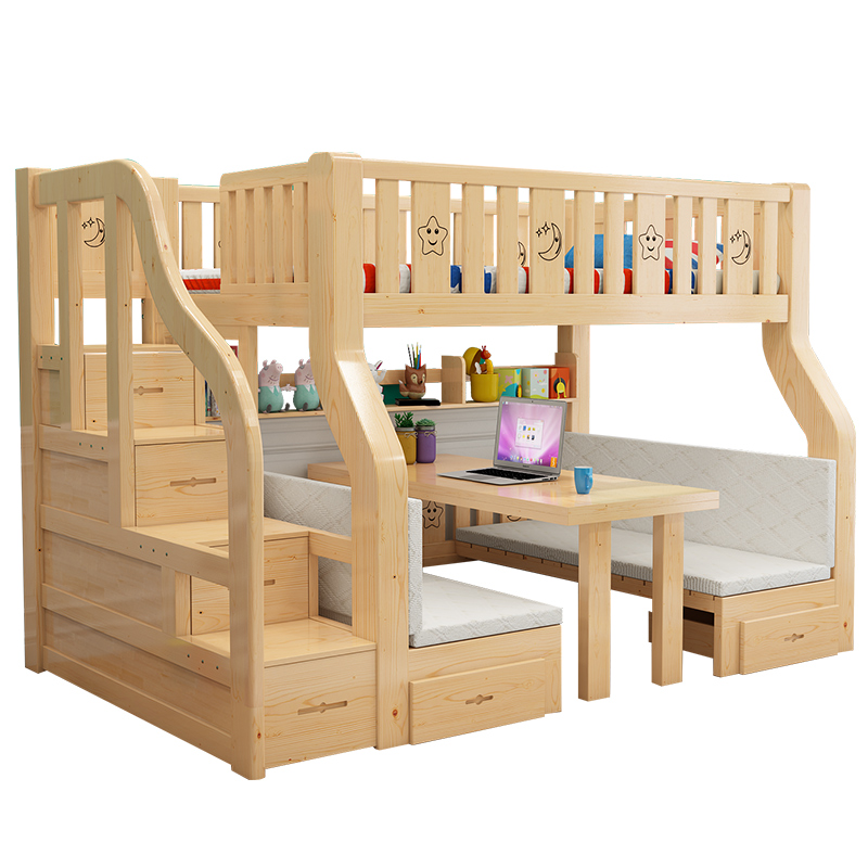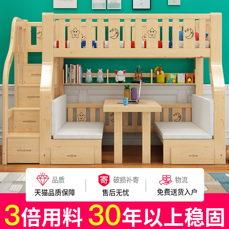 实木高低床带书桌衣柜双层床成人多功能上下床橡木二层儿童子母床