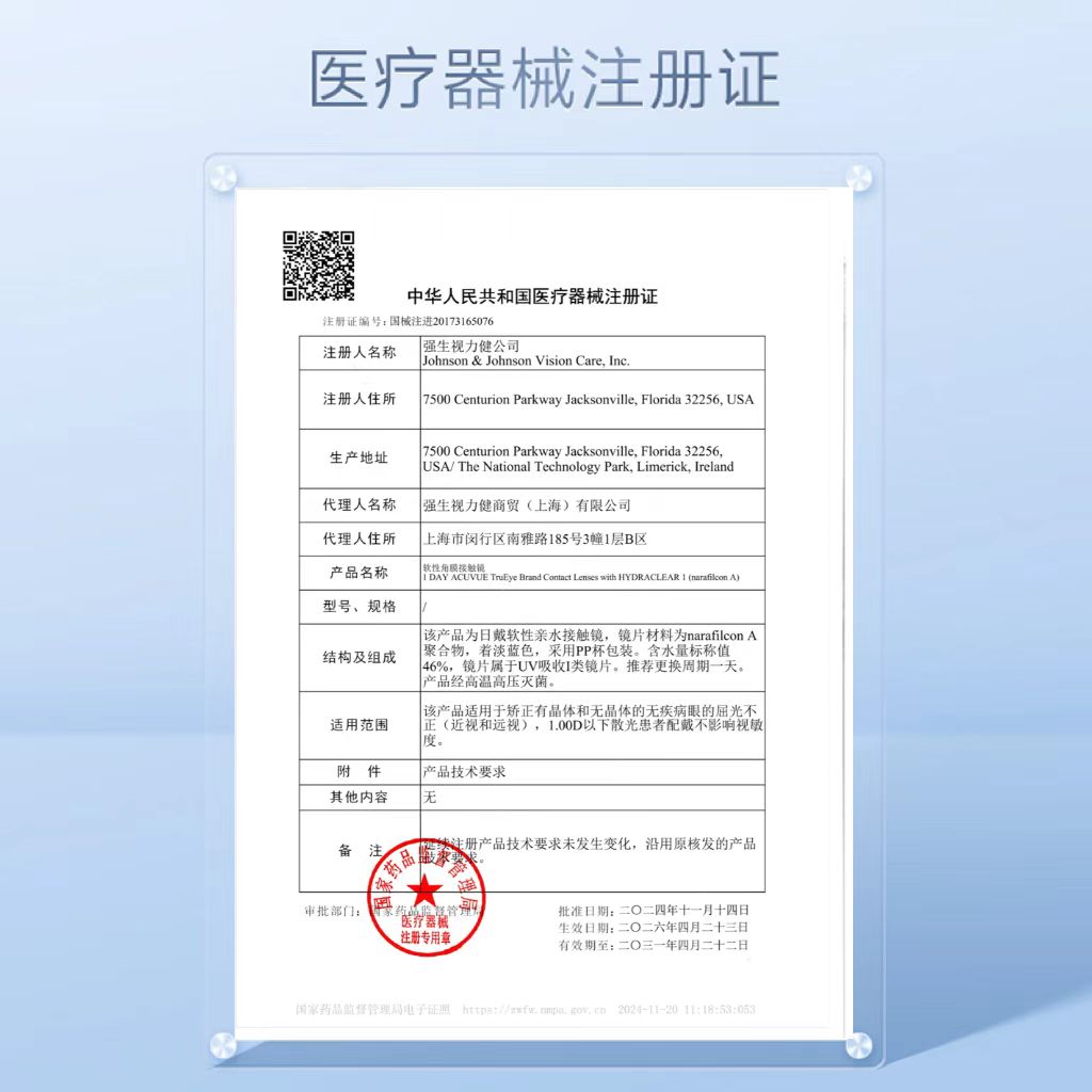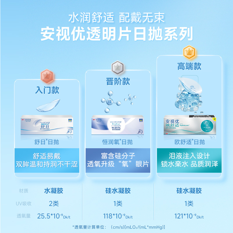 【自营】强生安视优恒润氧30片隐形近视眼镜日抛防UV硅水凝胶进口