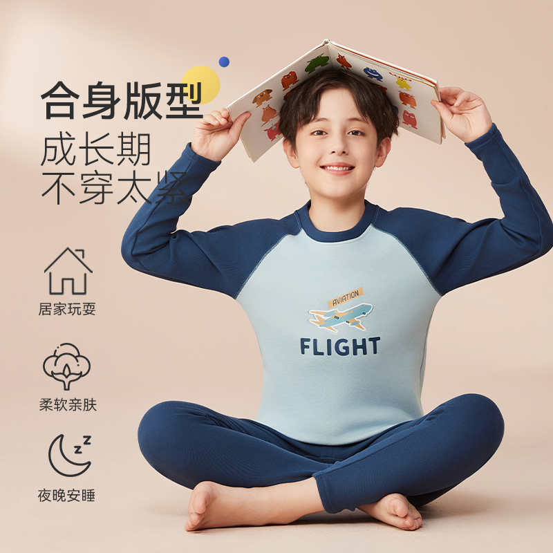 猫人儿童加绒保暖内衣套装2025新款男大童秋衣秋裤加厚青少年冬款