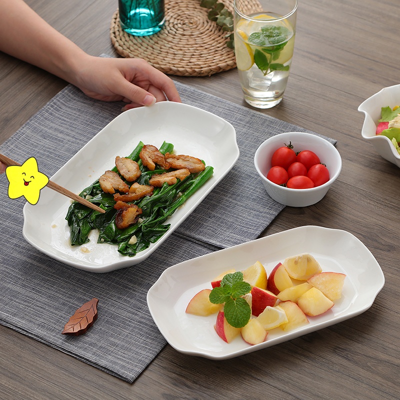 双耳蒸鱼盘 创意长方形碟子纯白鱼盘微波炉盘子餐厅饭店陶瓷餐具
