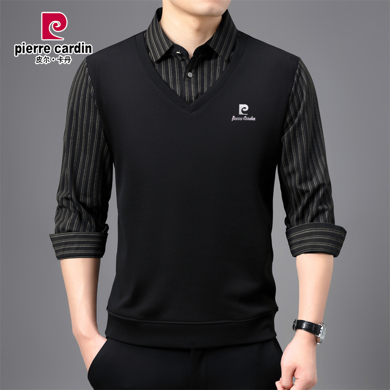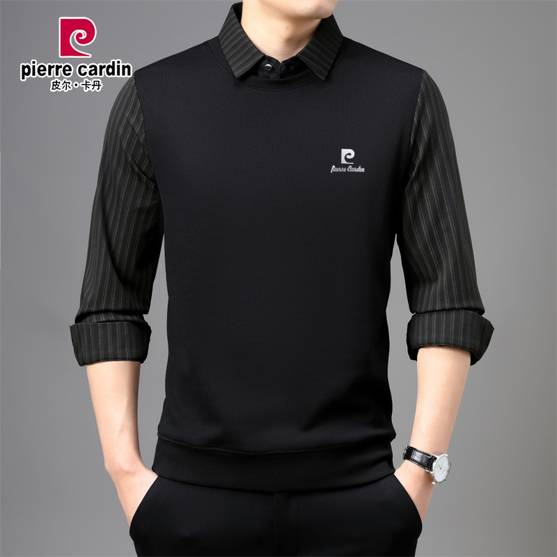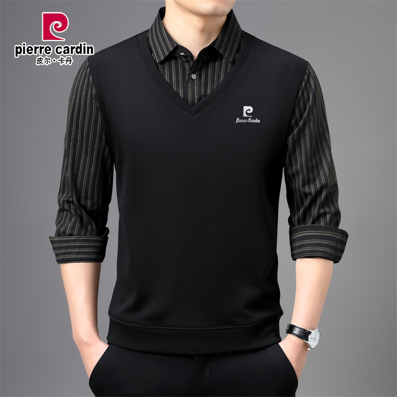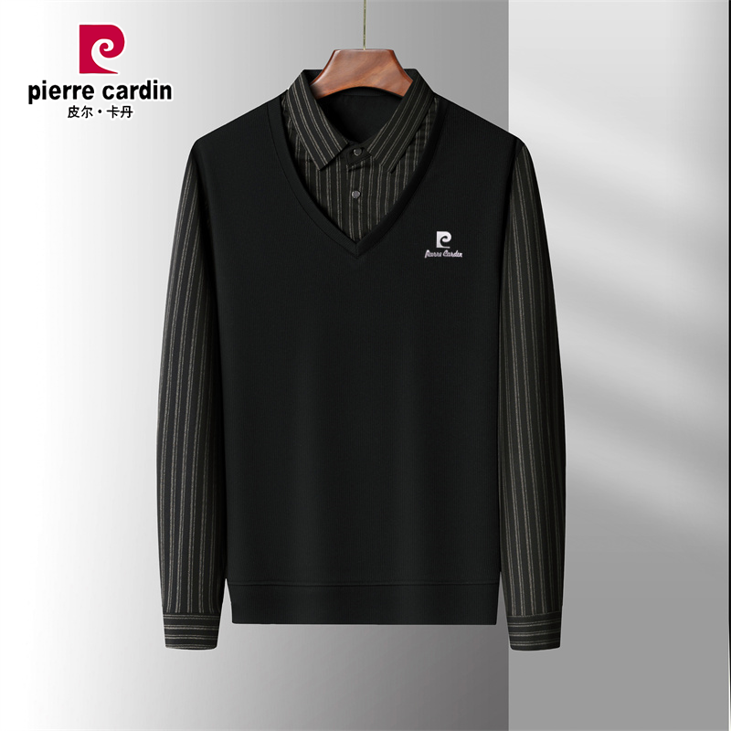 皮尔卡丹男士长袖T恤2025新款假两件POLO衫秋季休闲中老年打底衫