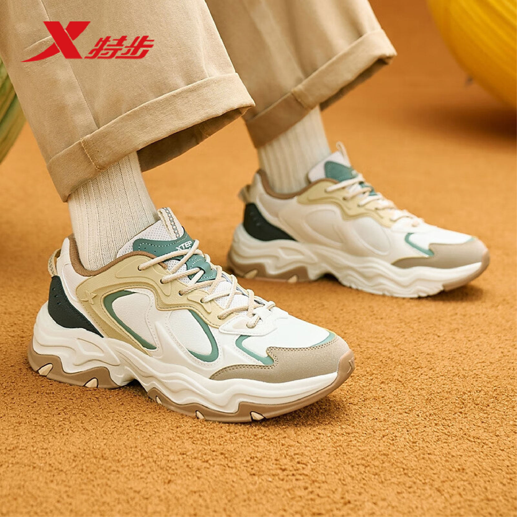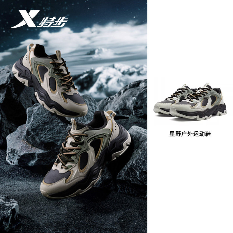特步男鞋星野户外运动鞋2025冬季新款皮面休闲老爹鞋975419320001