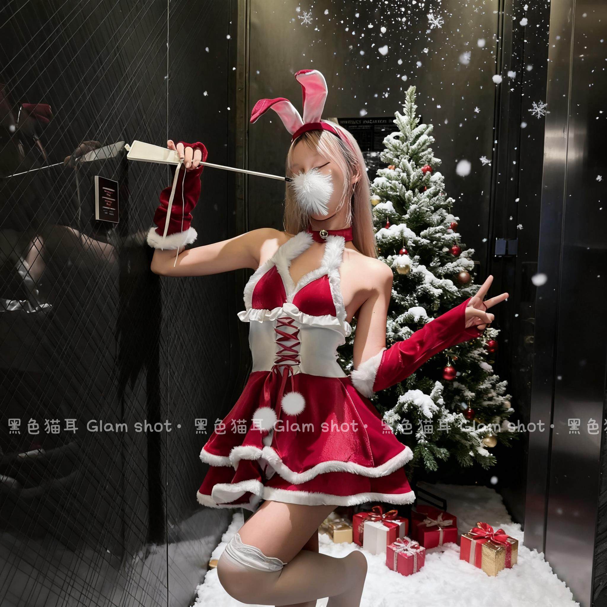 圣诞情侣性感毛绒可爱纯欲风兔女郎cosplay女装战袍连体衣