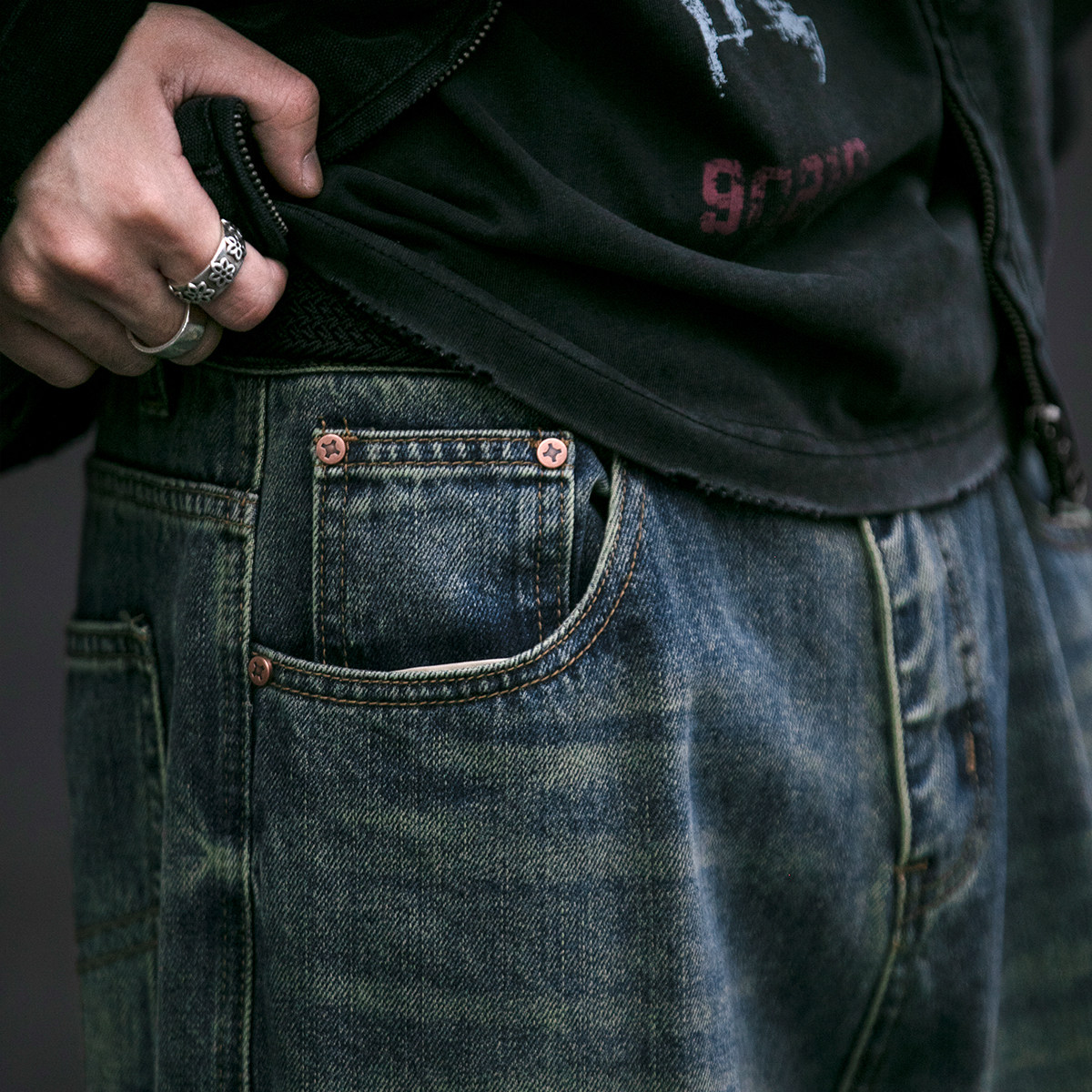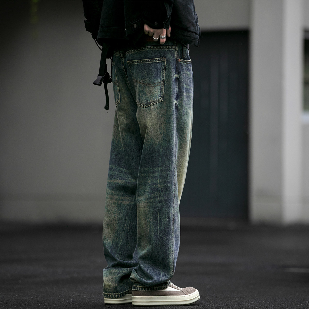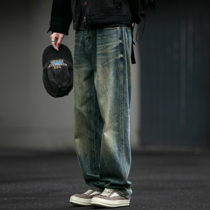 美式复古水洗质感牛仔裤男潮牌宽松直筒裤vintage垂感休闲长裤潮
