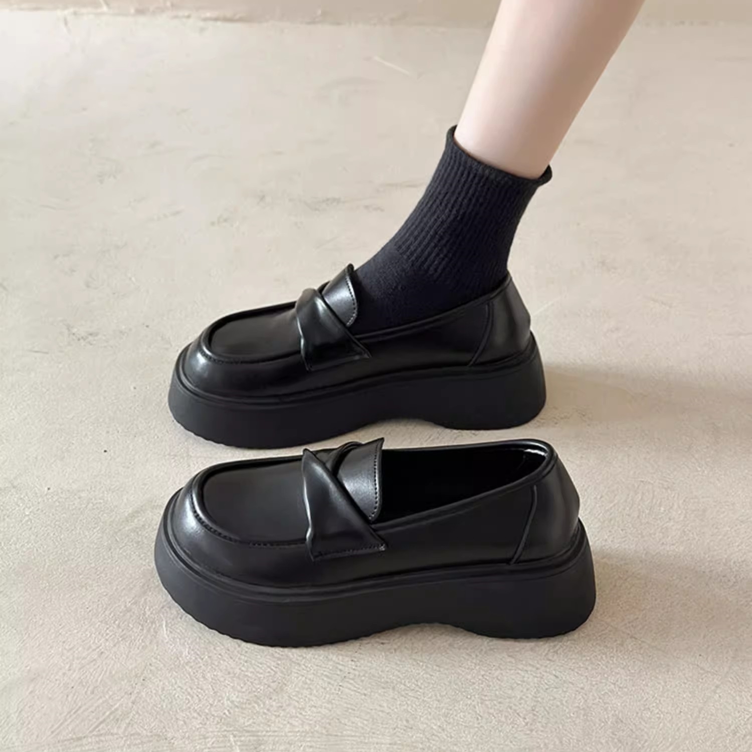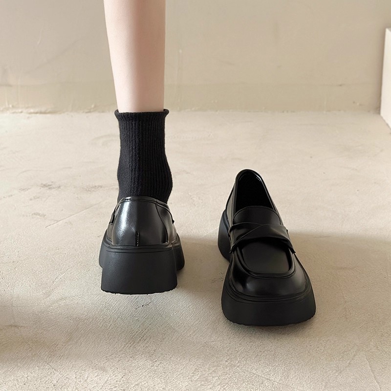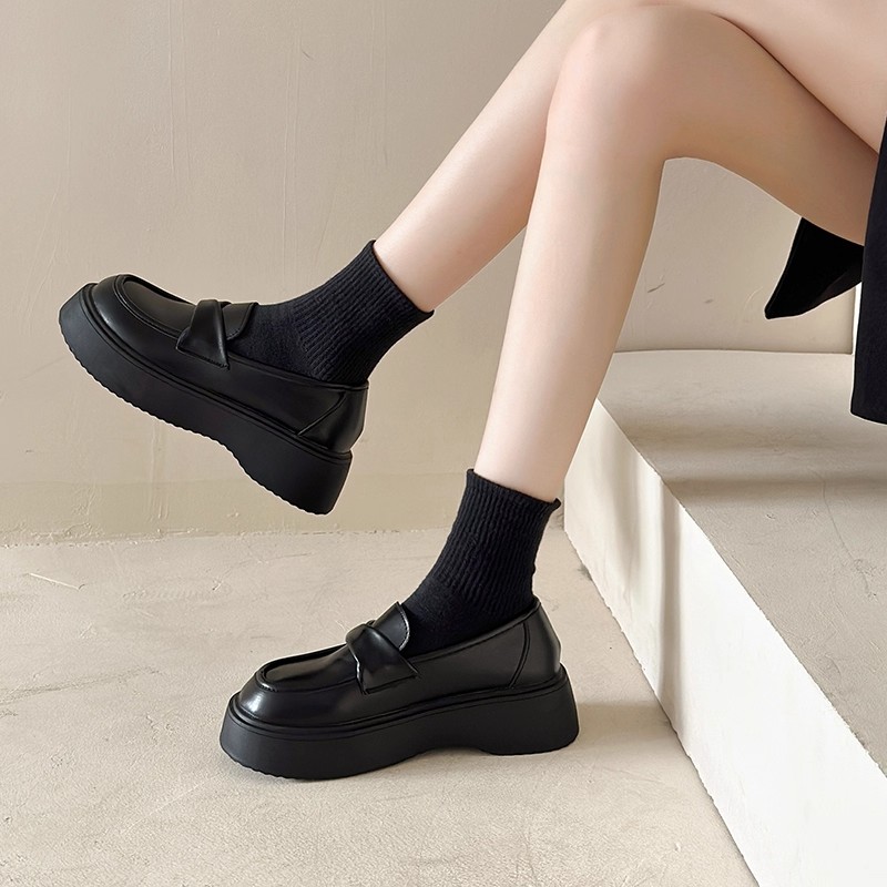 英伦风JK黑色小皮鞋女2025新款春季百搭配裙子学生厚底增高乐福鞋