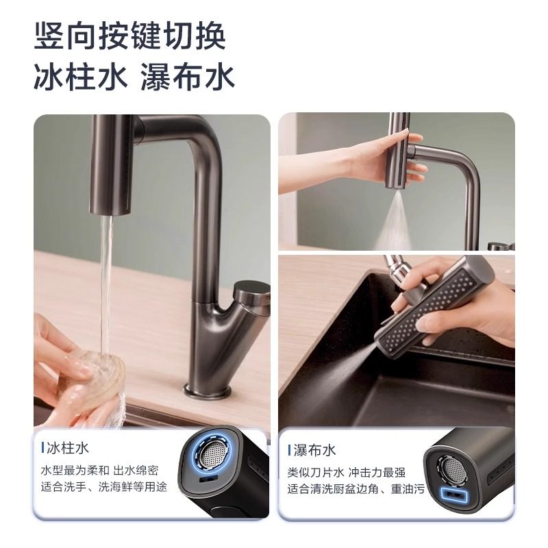 摩恩飞雨瀑布水抽拉式水龙头家用厨房洗碗洗菜水龙头16350/10321