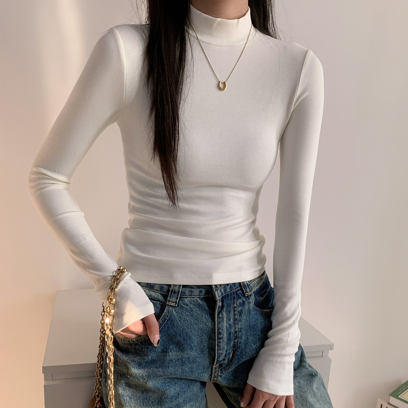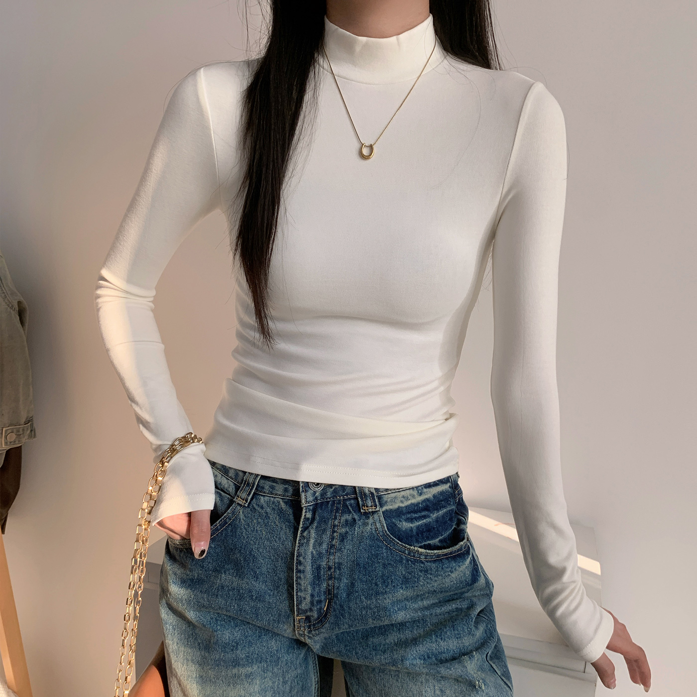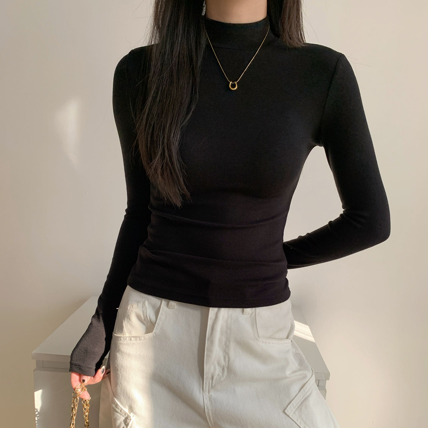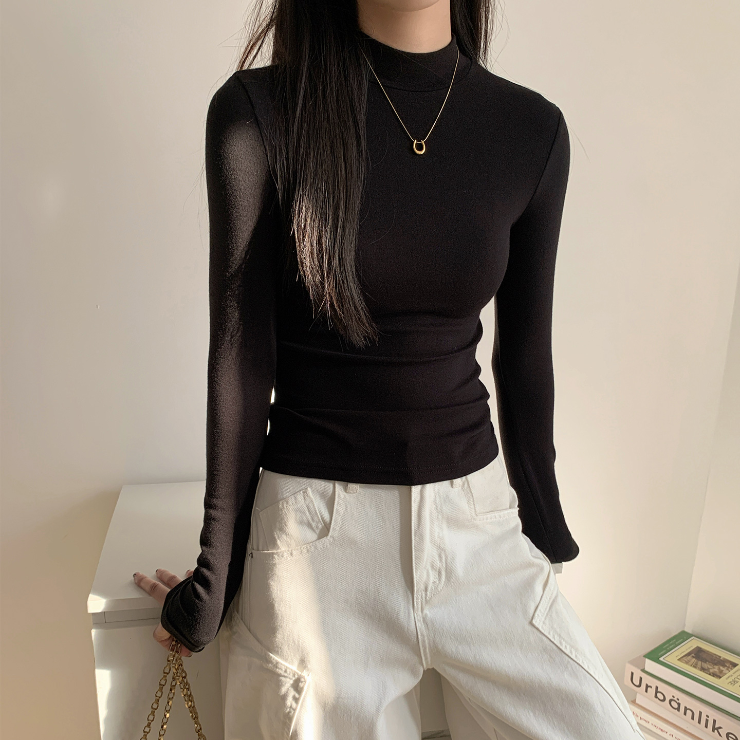 2025秋冬季半高领打底衫女洋气亲肤百搭气质休闲紧身立领长袖上衣