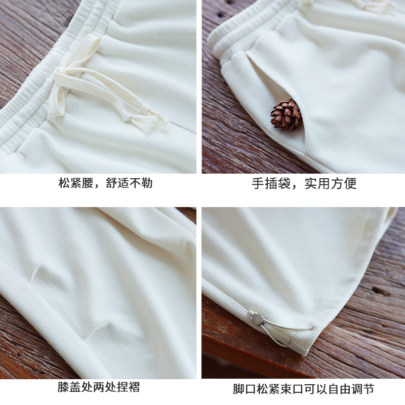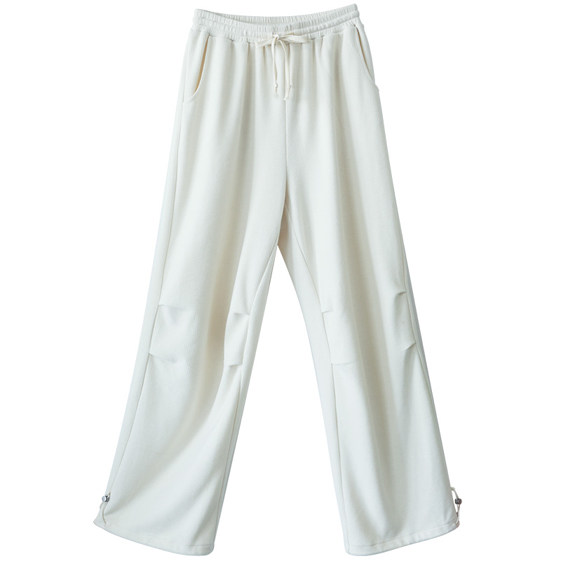 5折【街头信步】文艺白色针织阔腿直筒裤女冬季新款休闲宽松长裤