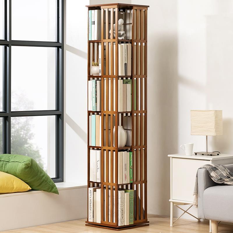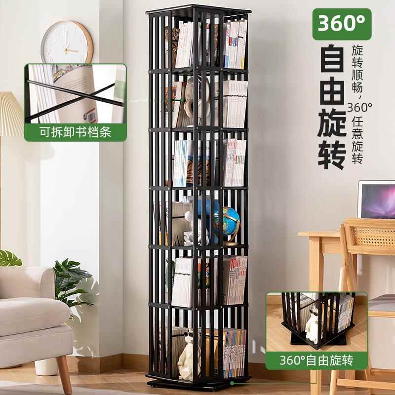 旋转书架落地置物架书柜子家用储物柜儿童客厅立架简易实木展示架
