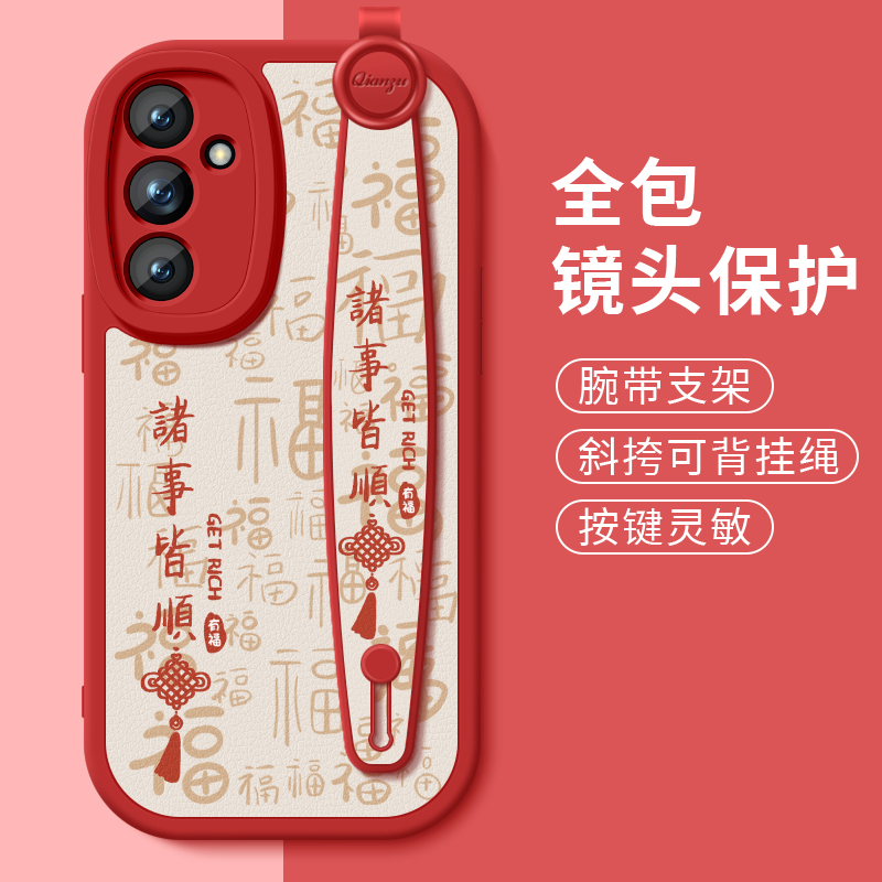 适用三星a55手机壳a52斜挎腕带a53诸事皆顺女款a54新年Galaxy背带挂绳保护套软壳全包高级好看硅胶红色皮纹