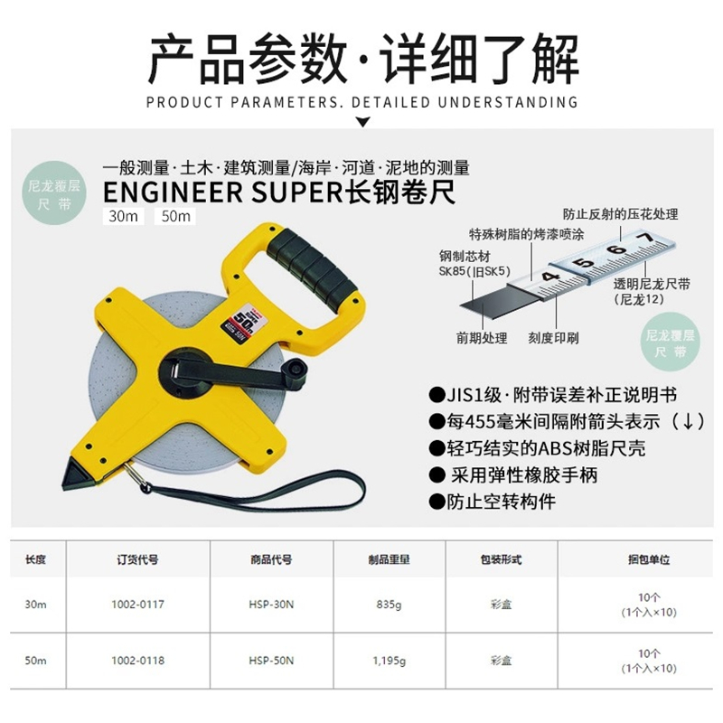 tajima日本田岛长卷尺架式防水送检一级精准20原装正品钢卷尺50米