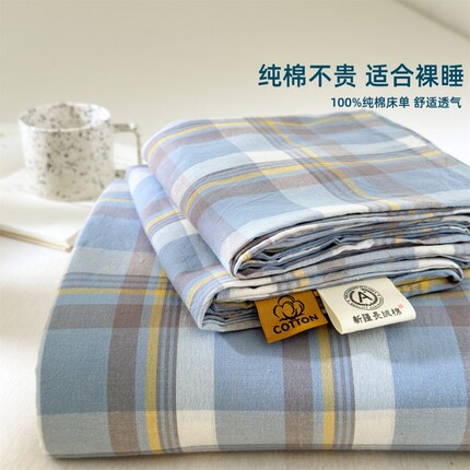 全棉纯棉床单单件100夏季学生宿舍床罩家用被单枕套三件套格子