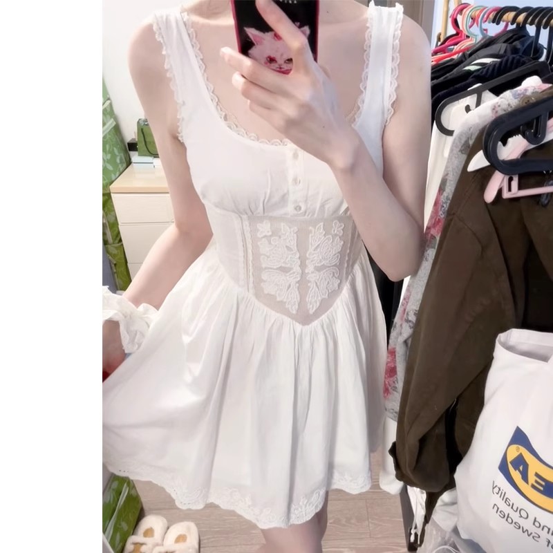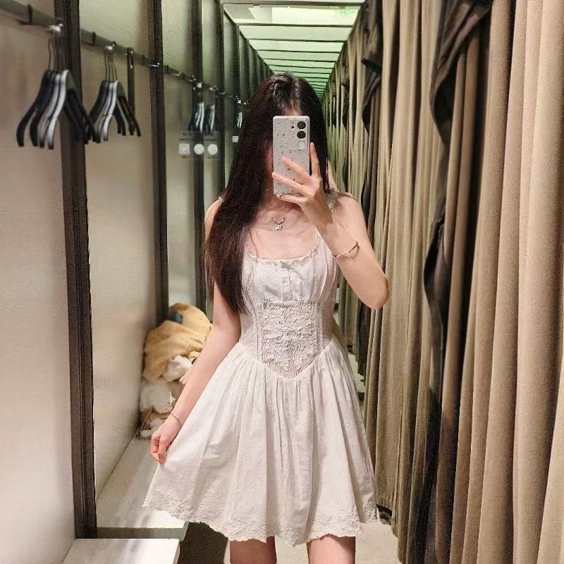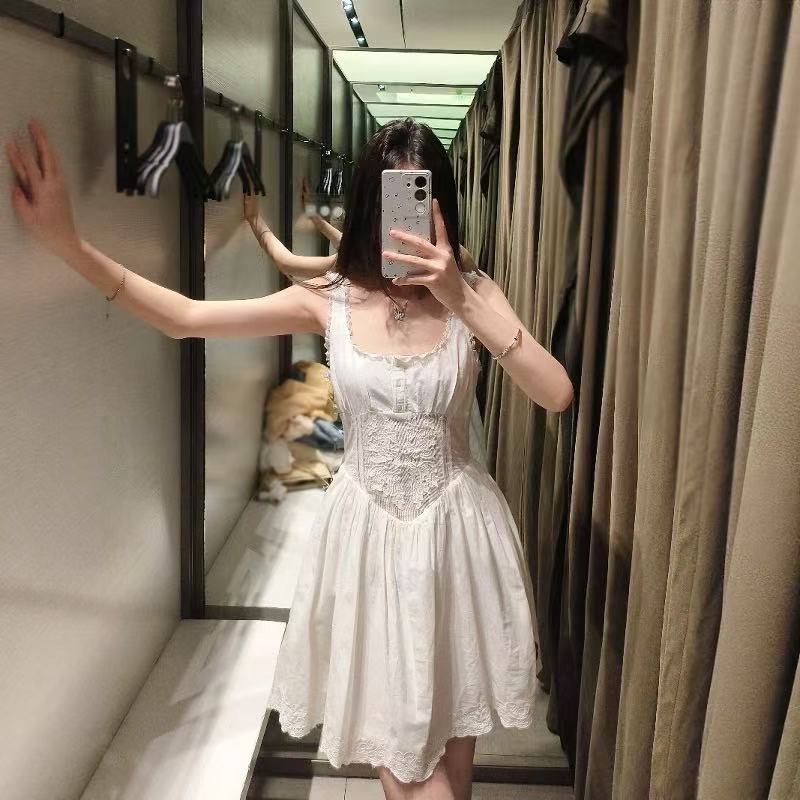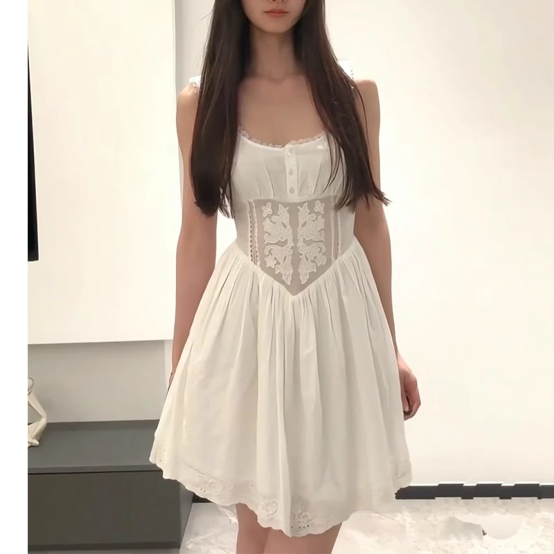 2025女装夏季新款法式蕾丝刺绣修身收腰吊带迷你短连衣裙 7200028