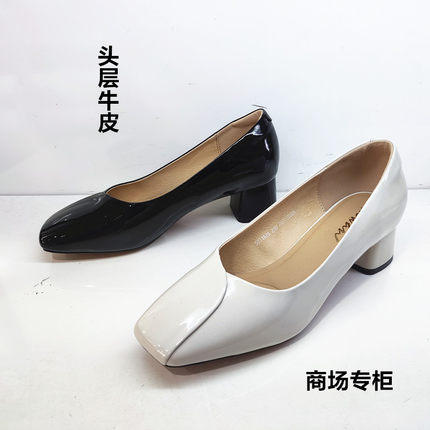 商场欧洲站时尚单鞋2024秋季时尚法式玛丽珍单鞋漆皮中跟粗跟女鞋