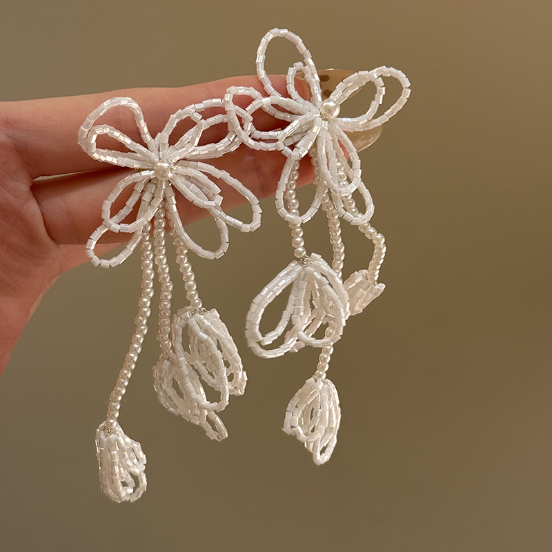 海岛风情~法式复古珍珠串珠耳钉女高级感度假风耳环独特夸张耳饰
