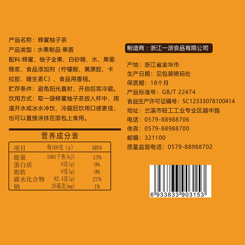 福事多蜂蜜柚子茶果茶420g×1盒