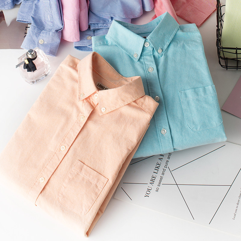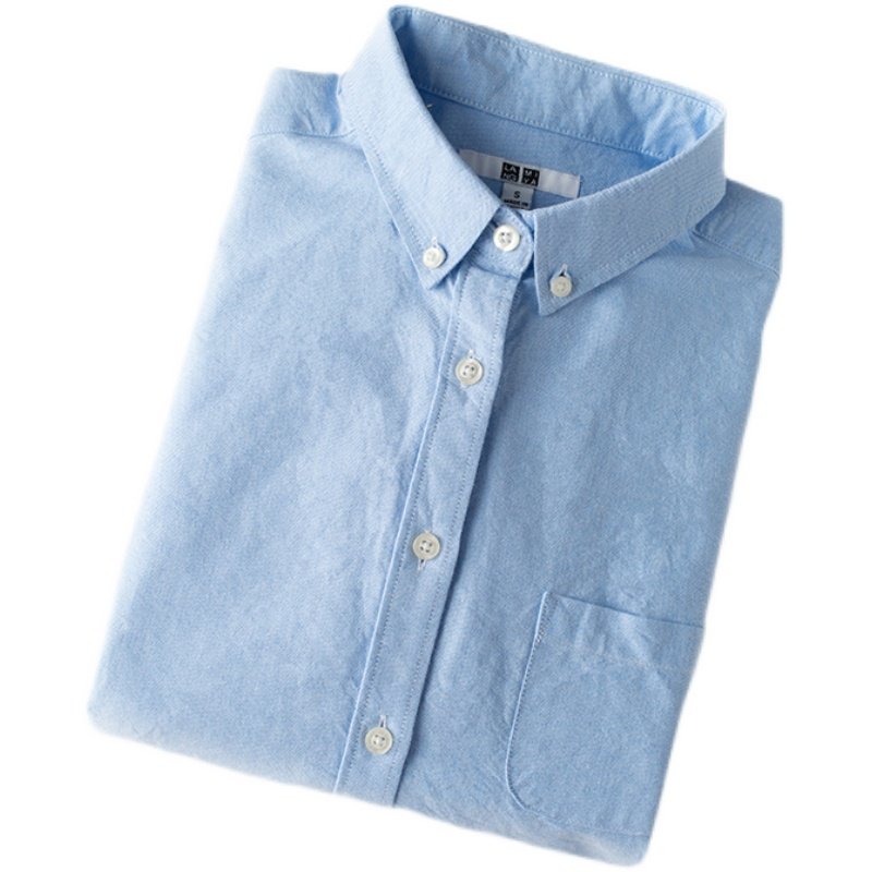 牛津纺纯色全棉女春装衬衫工装白色打底学生长袖衬衣工装衬衣韩版