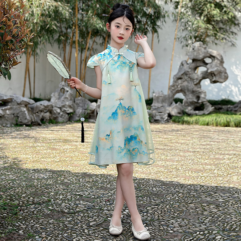 女童夏装连衣裙中国风2024新款中大童汉服旗袍裙儿童时尚公主裙潮