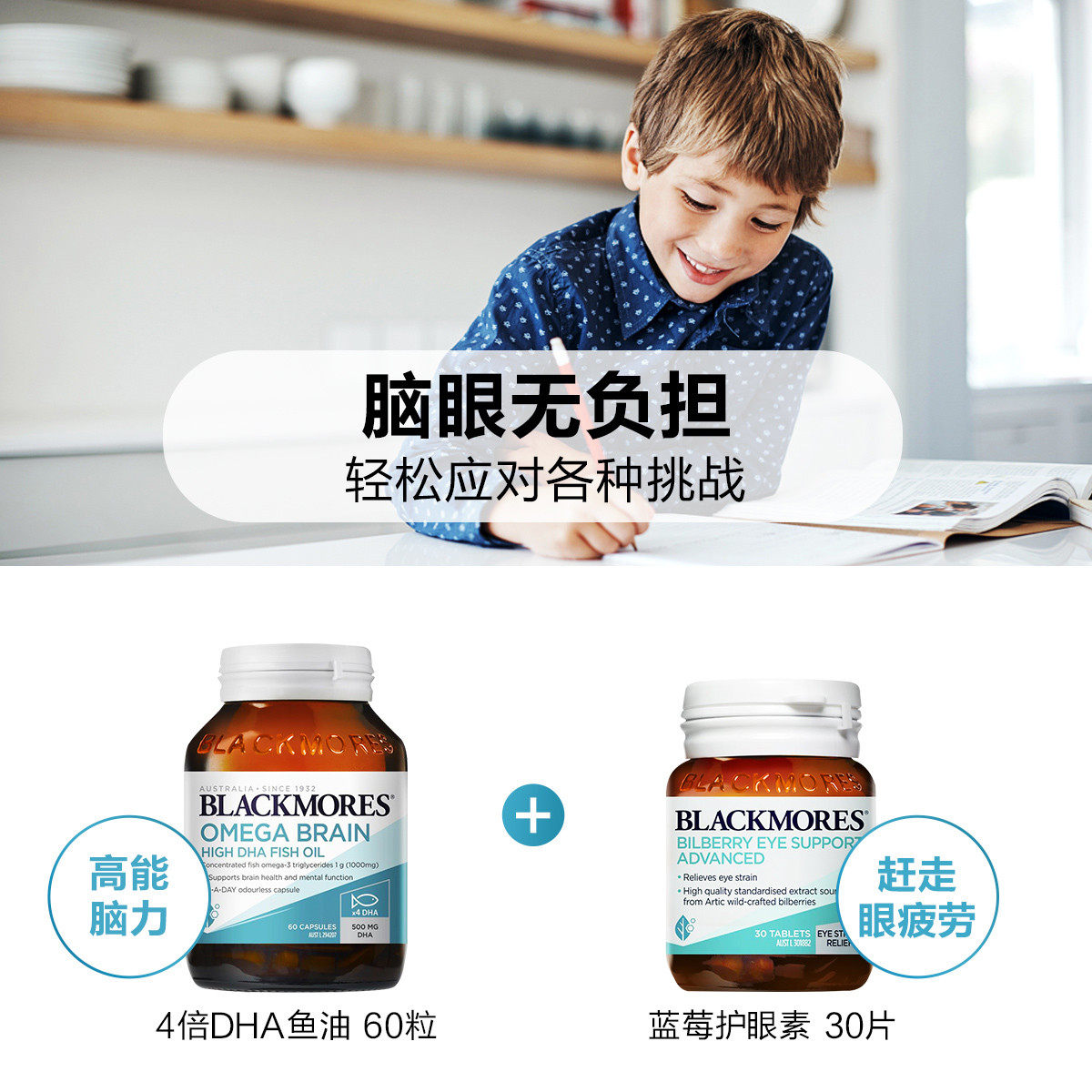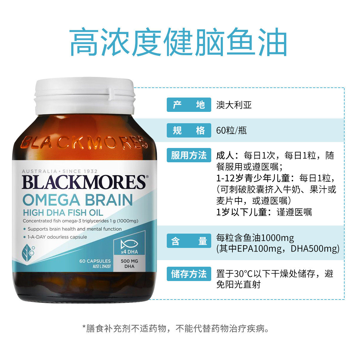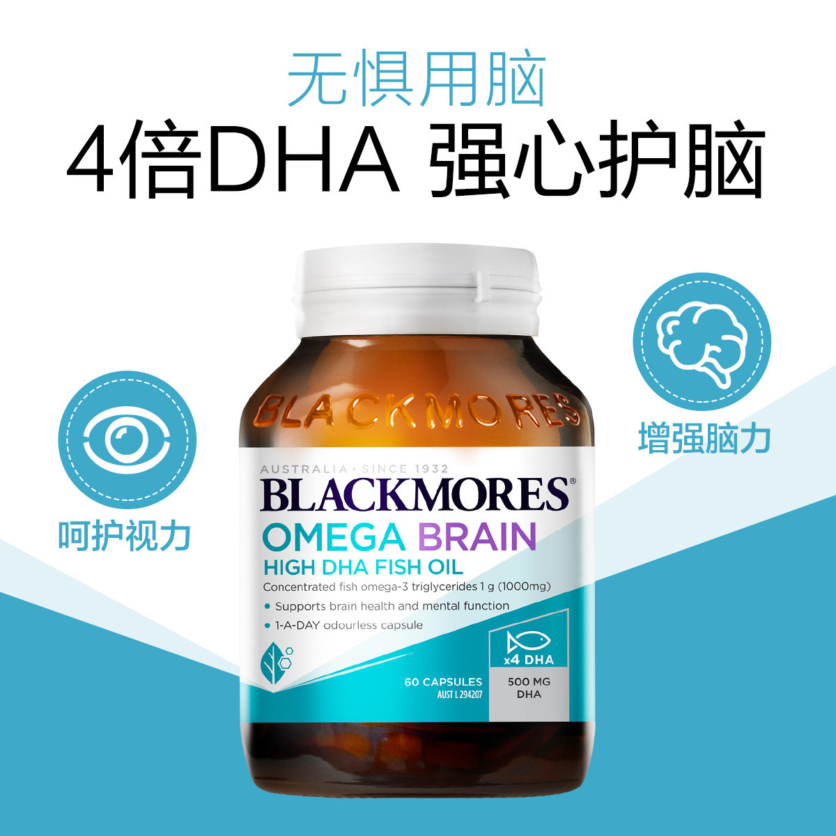 BLACKMORES澳佳宝4倍鱼油DHA深海脑铂金omega3软胶囊青少年记忆力