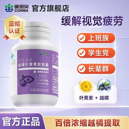 康恩贝越橘叶黄素软胶囊成人中老年人缓解视疲劳眼睛非软糖赠品