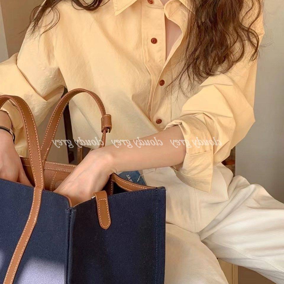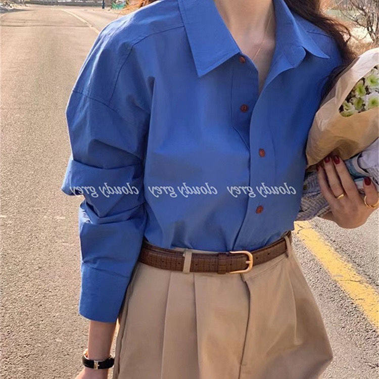 早秋新品纯棉宽松衬衣韩范衬衣女打底高级感别致克莱因蓝衬衫