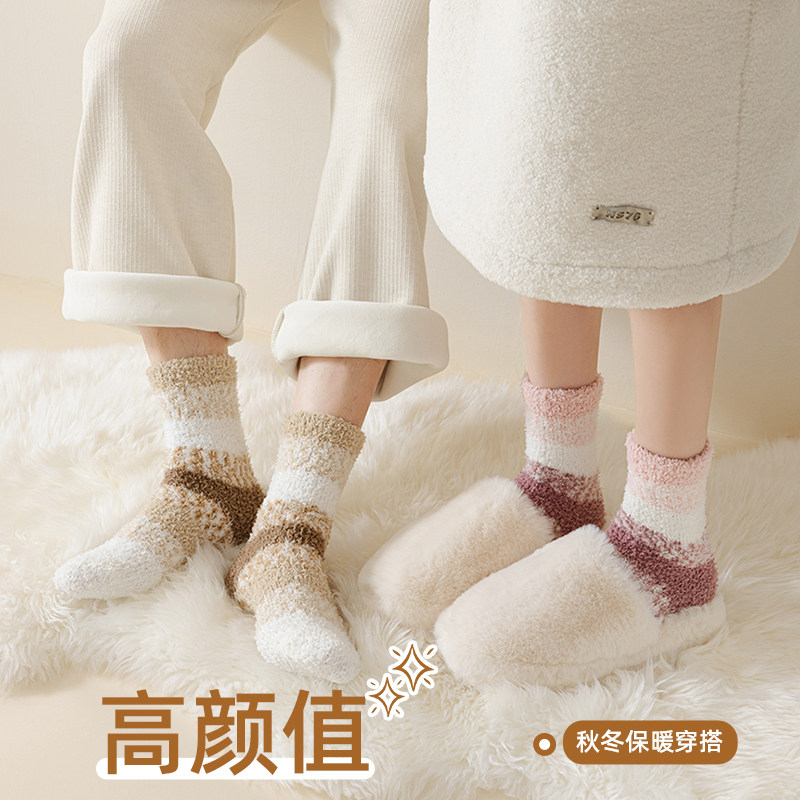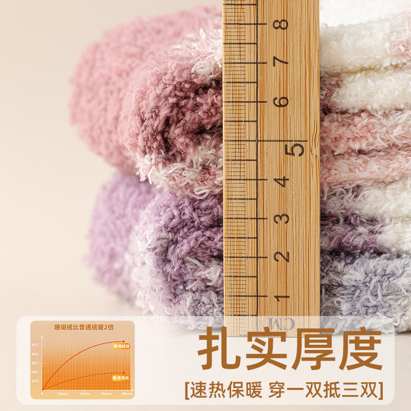 猫人珊瑚绒袜子女款中筒情侣保暖加厚加绒睡眠地板袜秋冬季月子袜