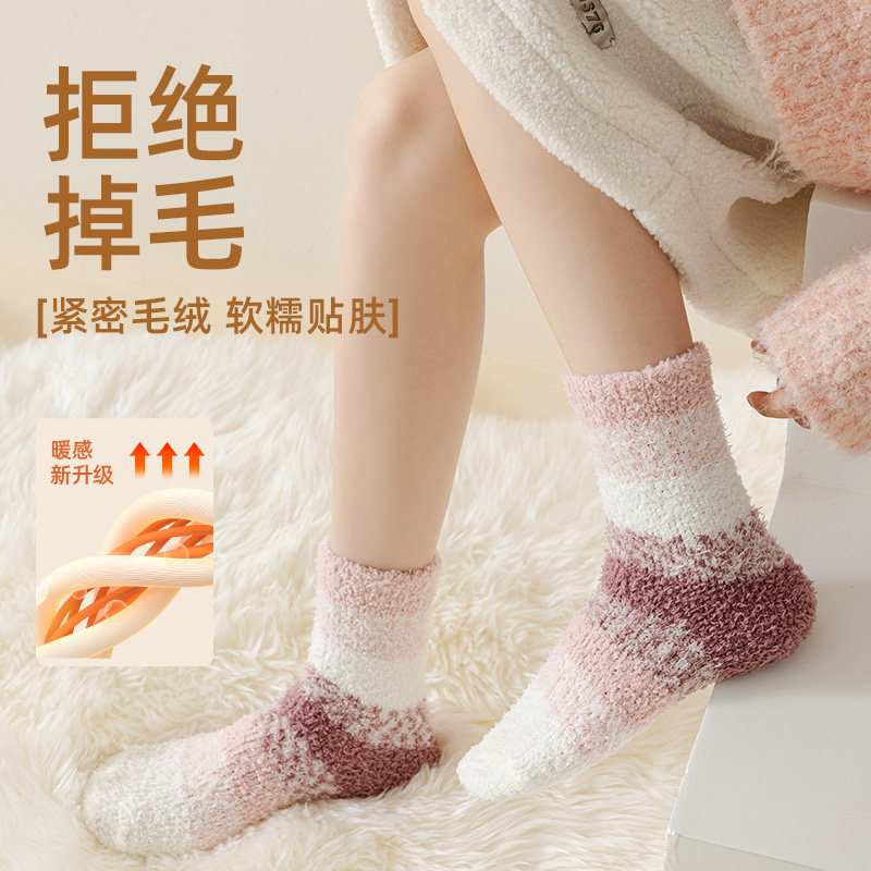 猫人珊瑚绒袜子女中筒袜加厚保暖