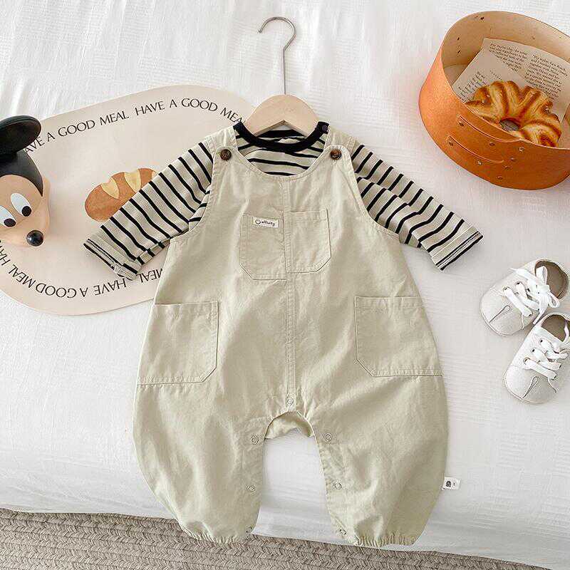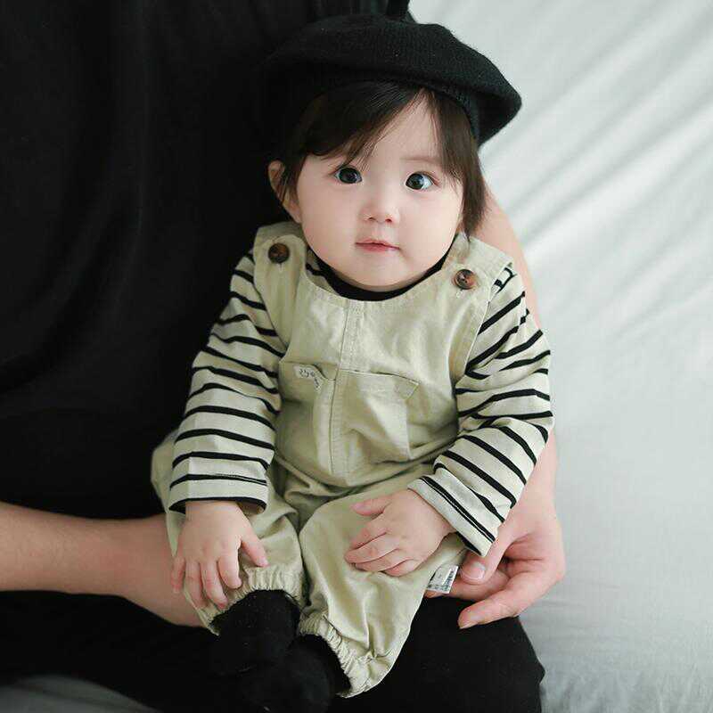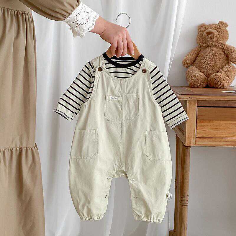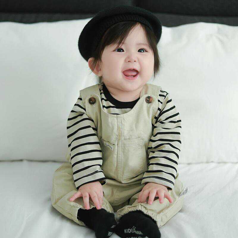 婴儿衣服春秋装条纹背带裤两件外出服新生儿周岁男女宝宝春季套装