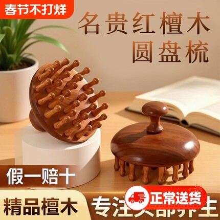 金丝檀木头皮按摩梳经络梳圆盘头部疏通神器养发宽齿梳子腹部穴位