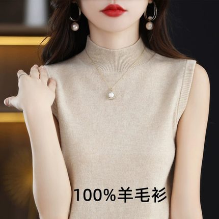 断码39元半高领羊毛背心女西装内搭外穿上衣坎肩无袖打底针织衫