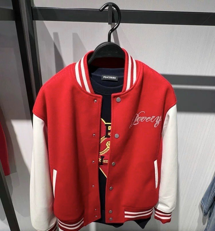 B2BCE1109 太平鸟男装2024春季新款时尚红色休闲棒球服夹克外套潮