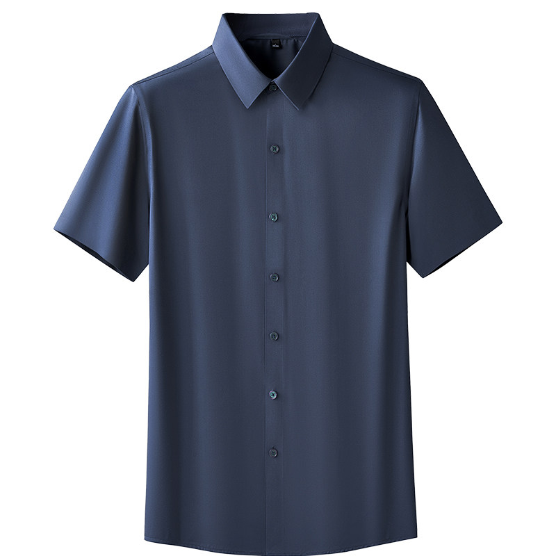 60支莫代尔抗皱免烫冰丝衬衫男短袖高端商务无痕2025夏季黑色正装