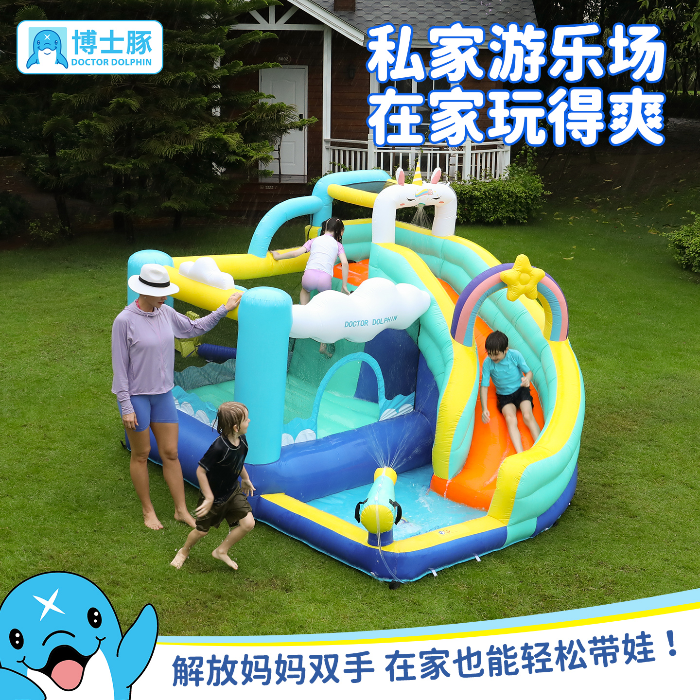 博士豚喷水独角兽充气城堡家用室内外儿童蹦蹦床滑滑梯跳床玩具屋