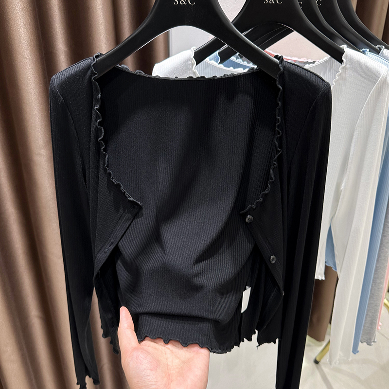 针织防晒开衫女式披肩外搭配吊带裙薄款小坎肩罩衫木耳边短款上衣