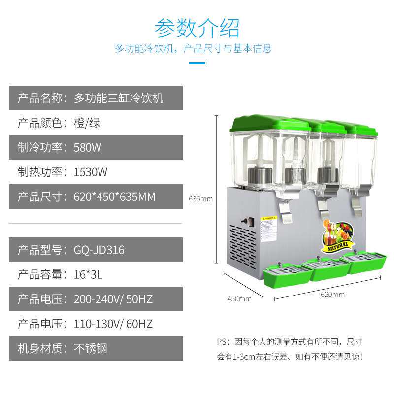 吉质商用果汁机三缸多功能冷饮机可选搅拌喷淋制热制冷冷饮机