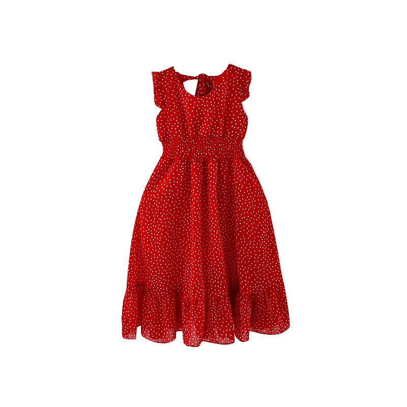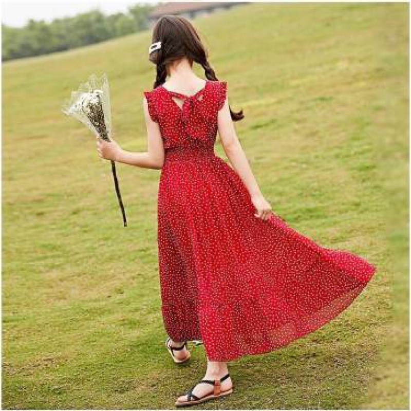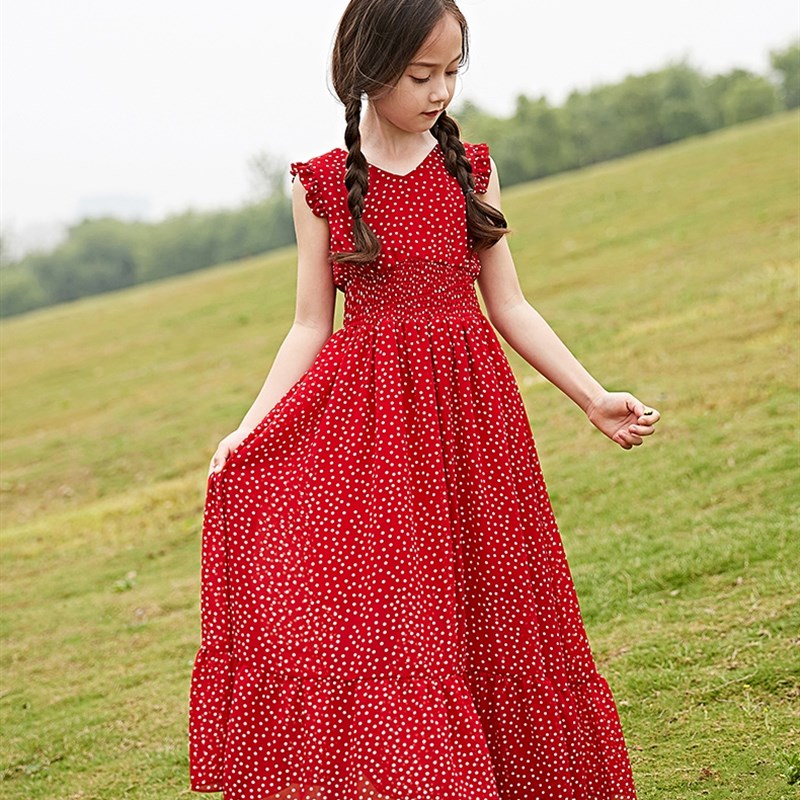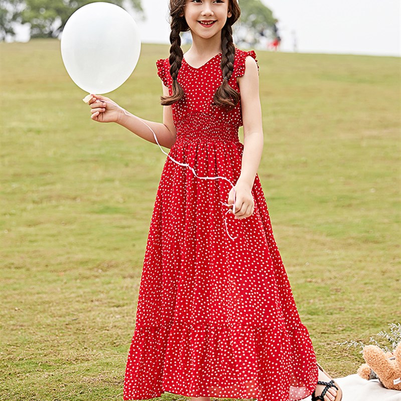 女童连衣裙夏季新款中大儿童雪纺长裙红色碎花公主裙沙滩裙背心裙