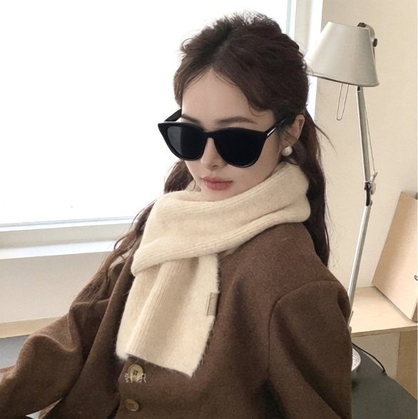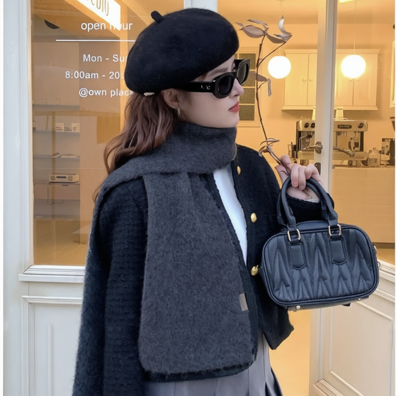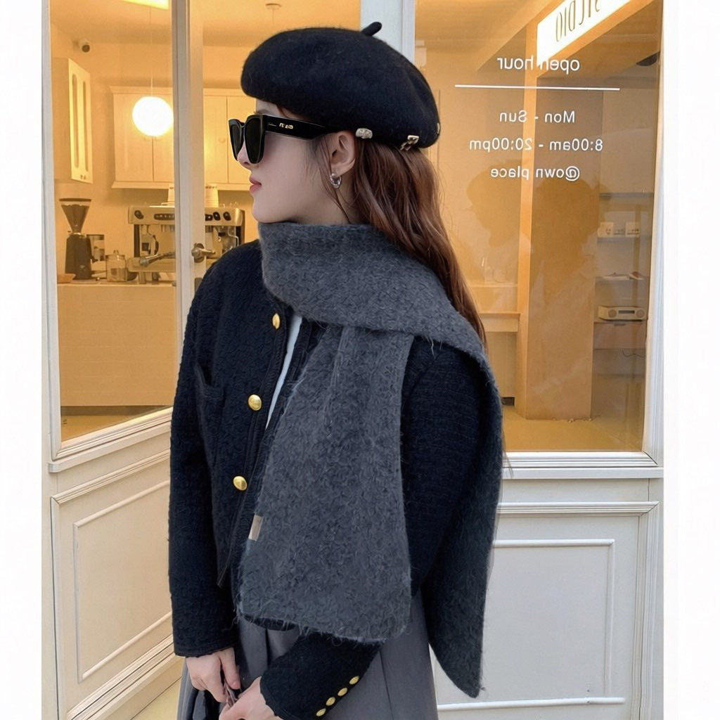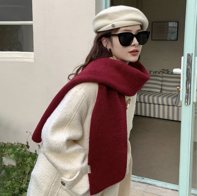 羊毛混纺灰色毛线围巾女款2025新款秋冬季酒红色高级感保暖围脖男