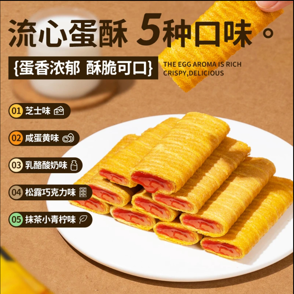 麦米米流心蛋酥咸蛋黄芝士味整箱5斤夹心鸡蛋卷饼干点心早餐糕点