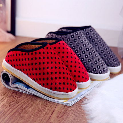 牛筋底男女士情侣棉拖鞋家居保暖加厚冬季中老年半包跟拖鞋纯手工