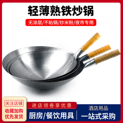 老式传统单柄炒锅无涂层不粘商用夜市摆摊炒米粉轻薄熟铁锅爆炒鼎