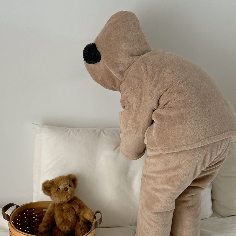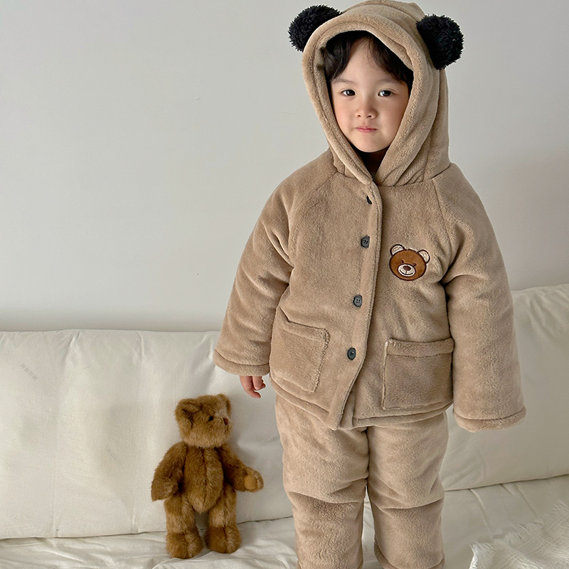 儿童睡衣男女童冬季三层夹棉加绒加厚家居服宝宝小熊保暖居家套装