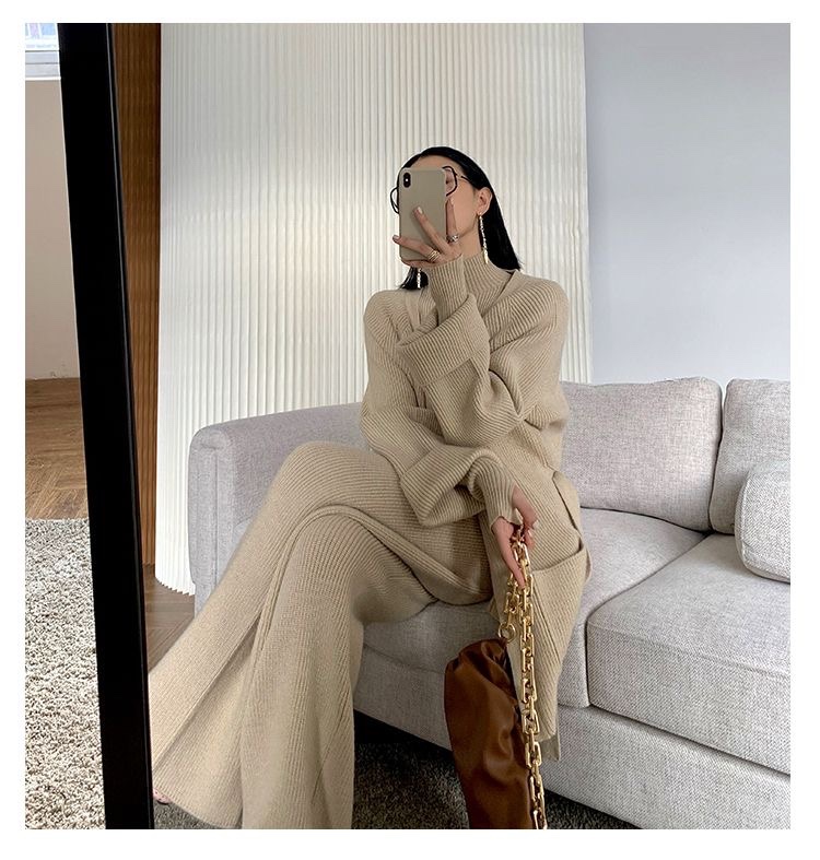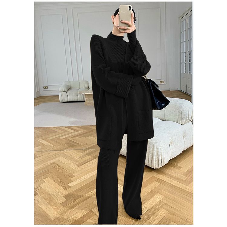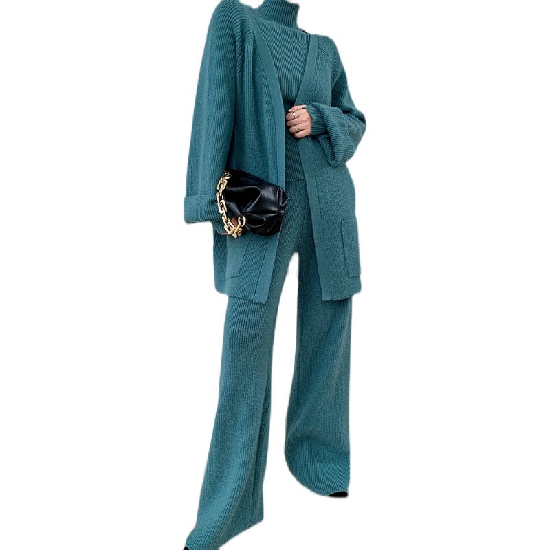 春季新款毛衣套装女休闲高级气质名媛时尚针织开衫+阔腿裤三件套