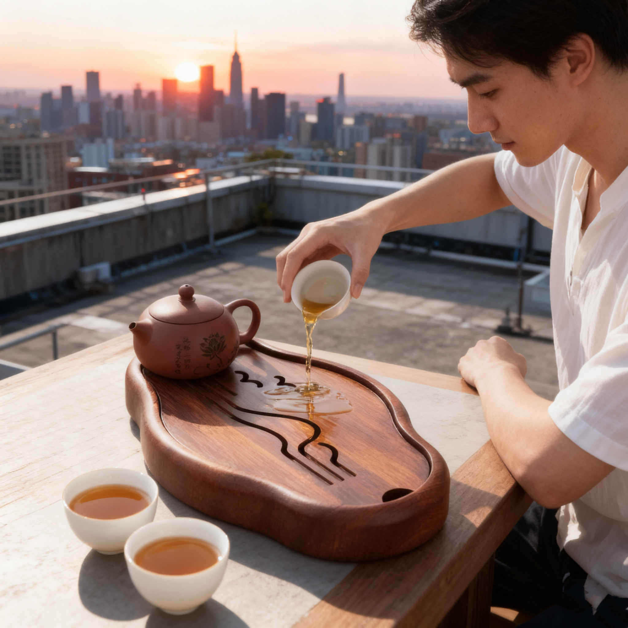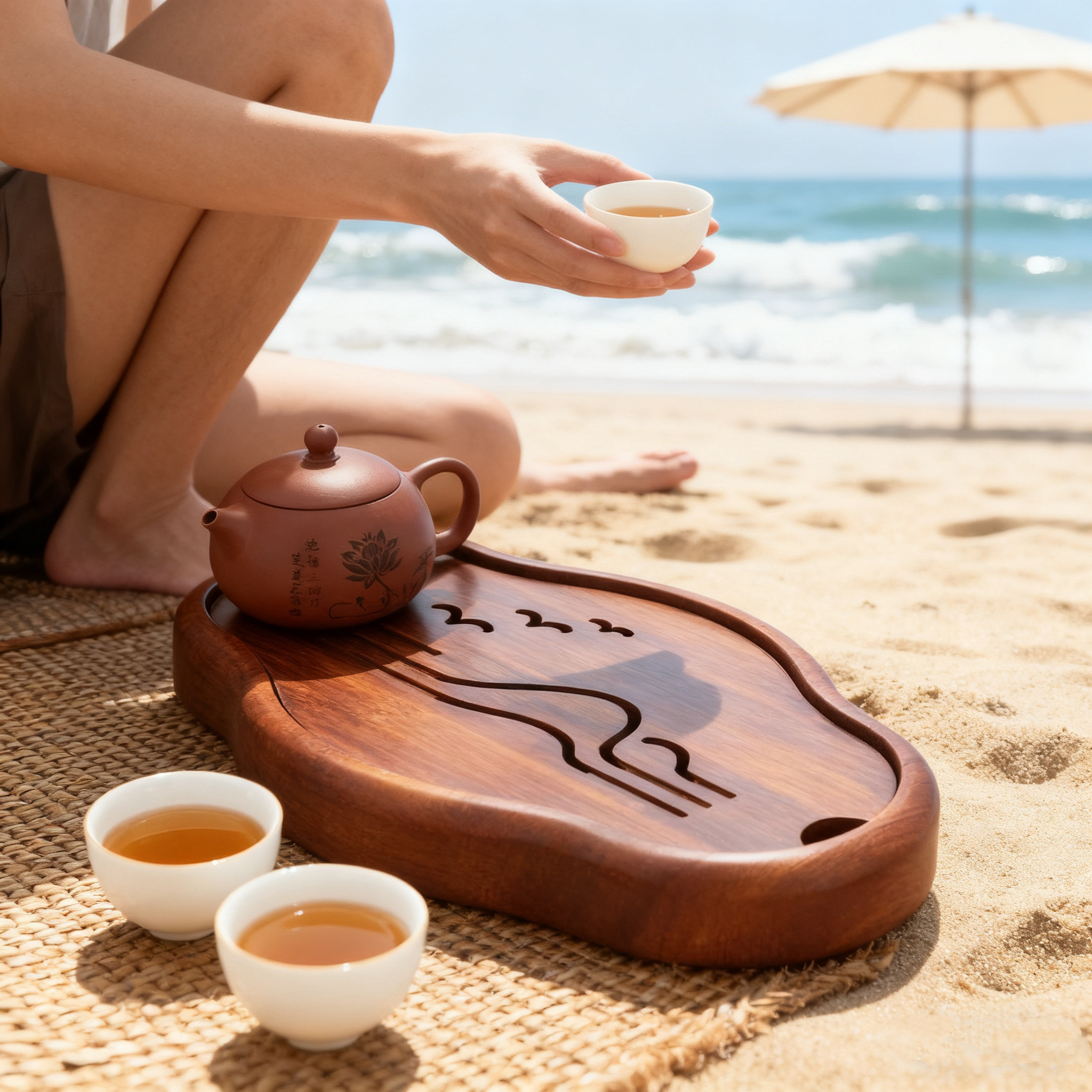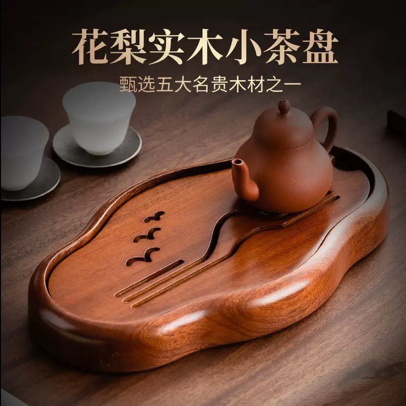 天然实木小茶盘储水式沥水盘户外小茶台花梨木茶盘整木掏挖干泡盘