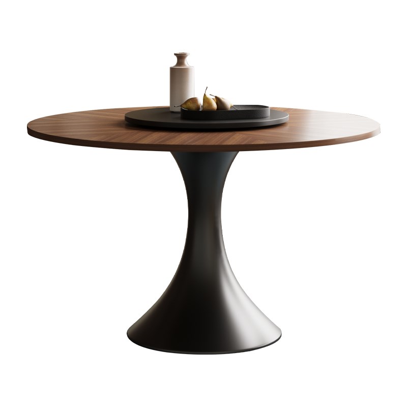 法式复古实木岩板圆形餐桌椅组合美式小户型中古风家用带转盘饭桌