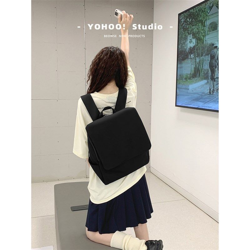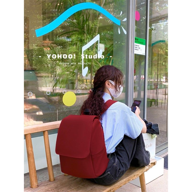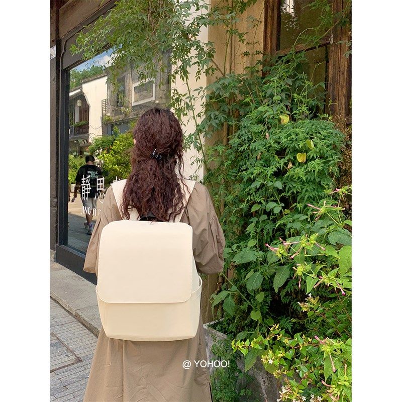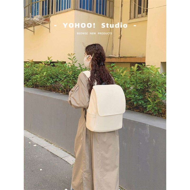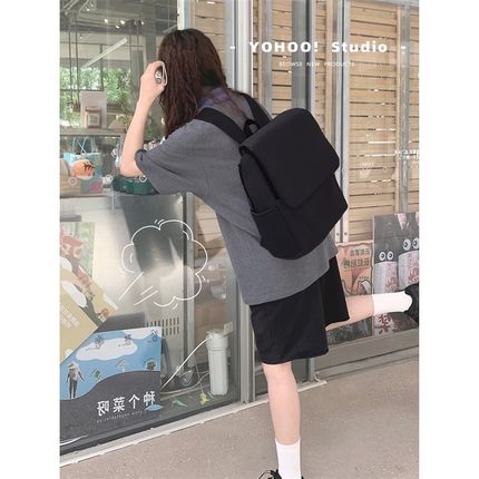 YOHOO!/INs韩简约日系纯色百搭大容量男女背包帆布学生双肩包书包