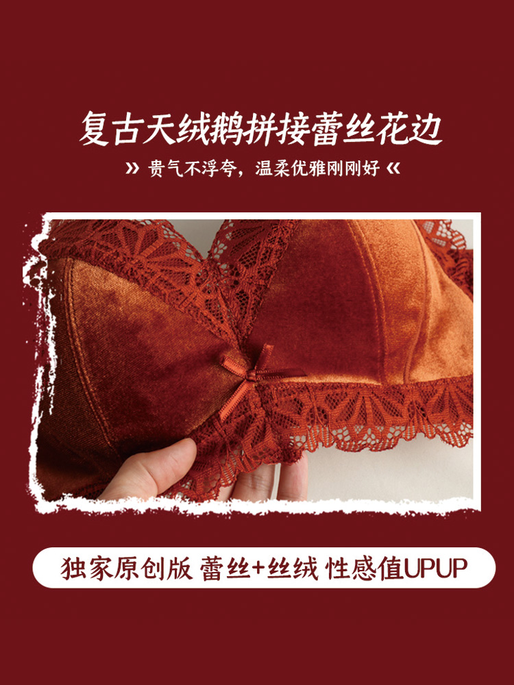 天鹅绒内衣女小胸聚拢调整型防下垂胸罩收副乳上托无钢圈文胸套装
