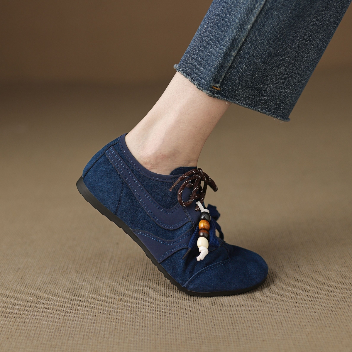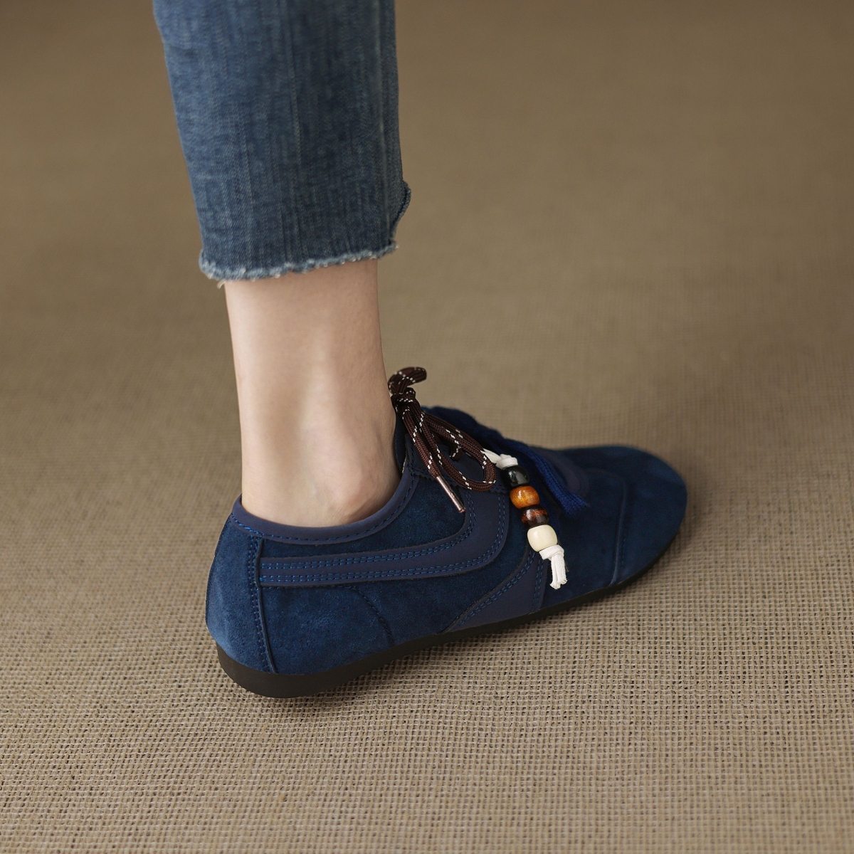 牛反绒百搭内增高单鞋女2025新款秋季时尚休闲小众德训鞋