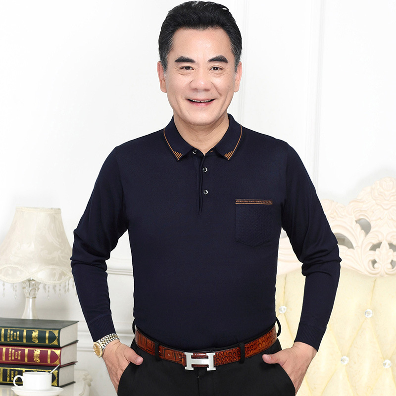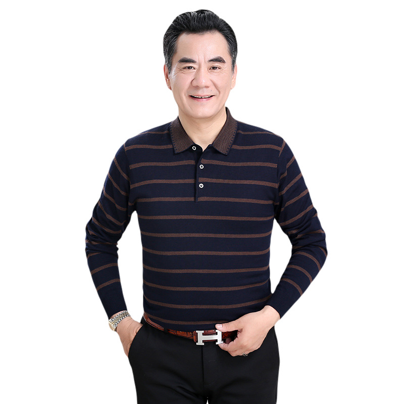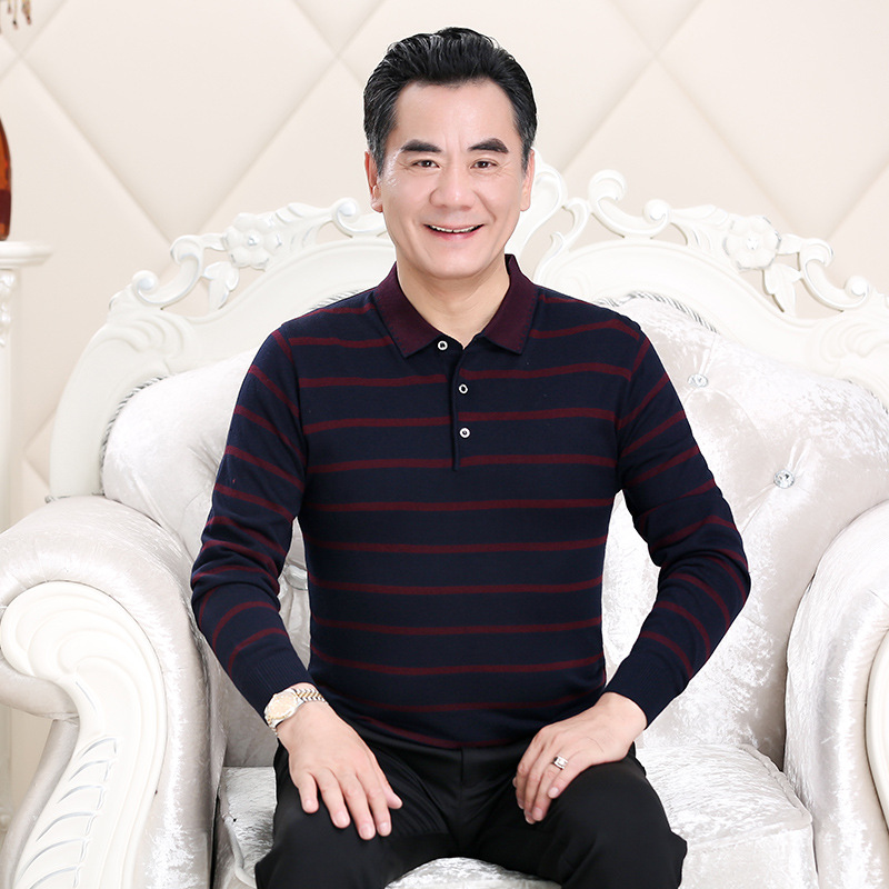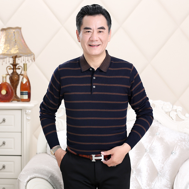 招微商中老年春秋款长袖t恤衫宽松条纹爸爸装上衣秋季男士t恤