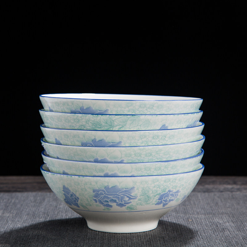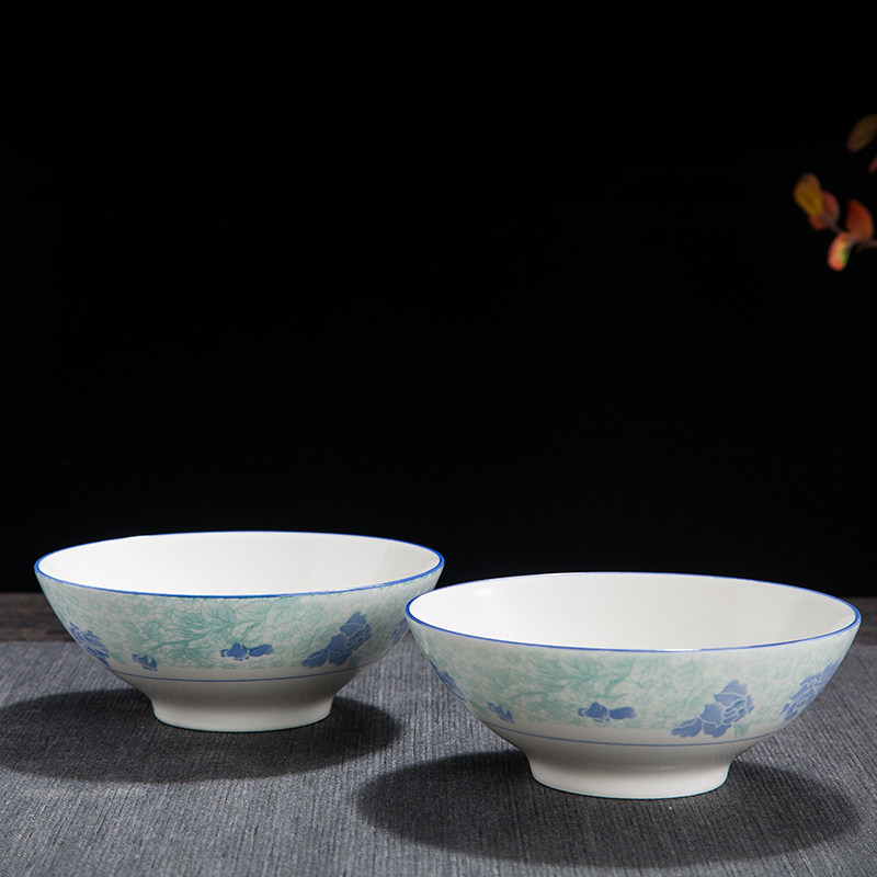 釉下彩餐具老式蓝边碗面碗家用创意米饭碗汤碗景德镇陶瓷中式菜碗